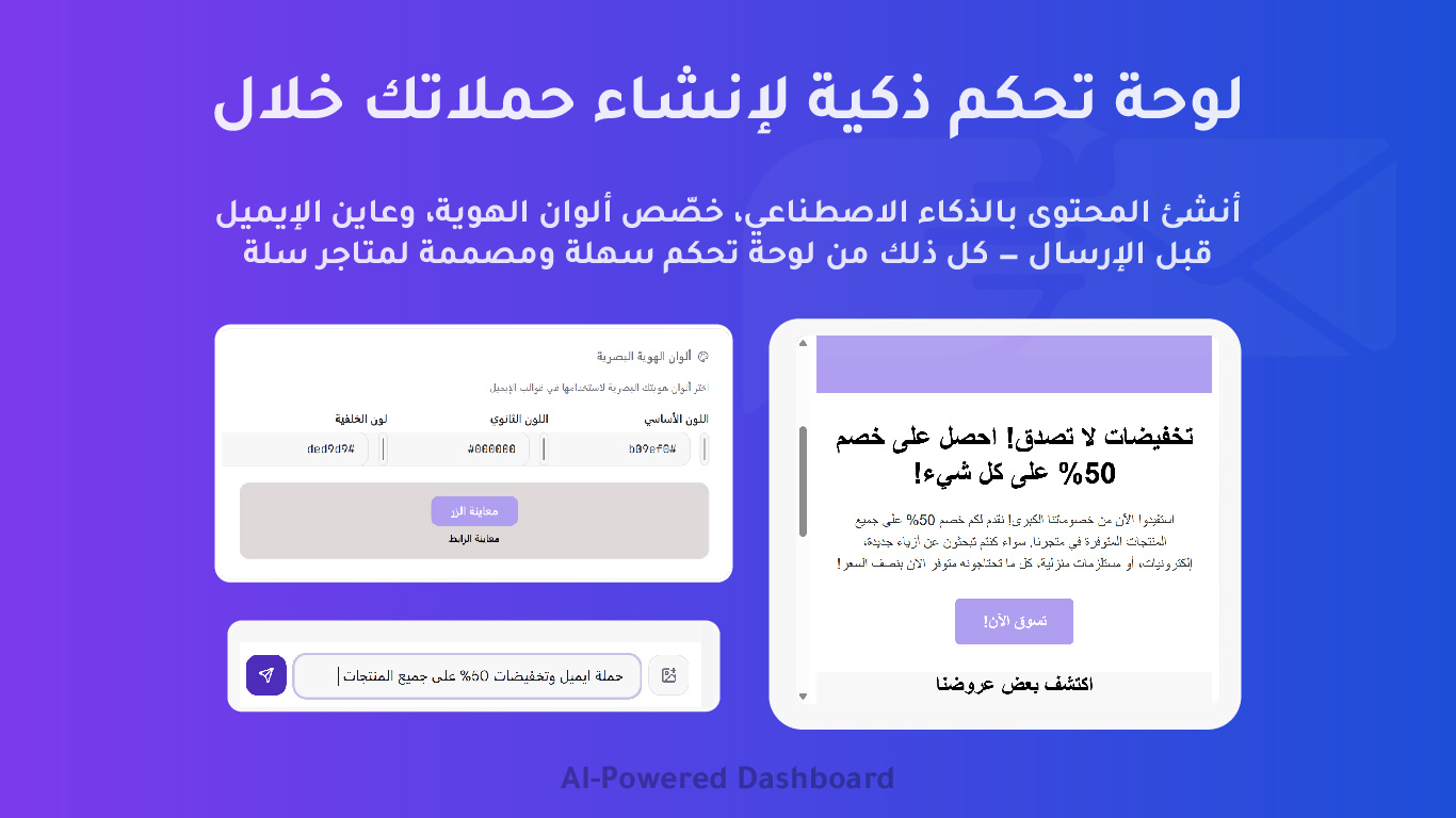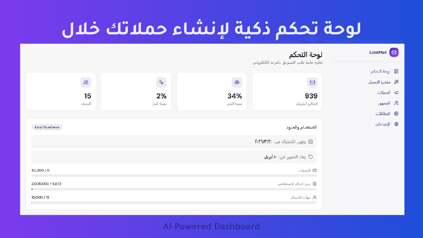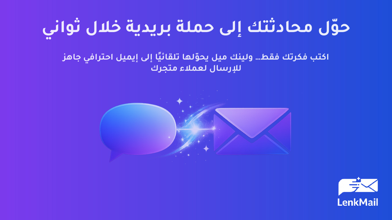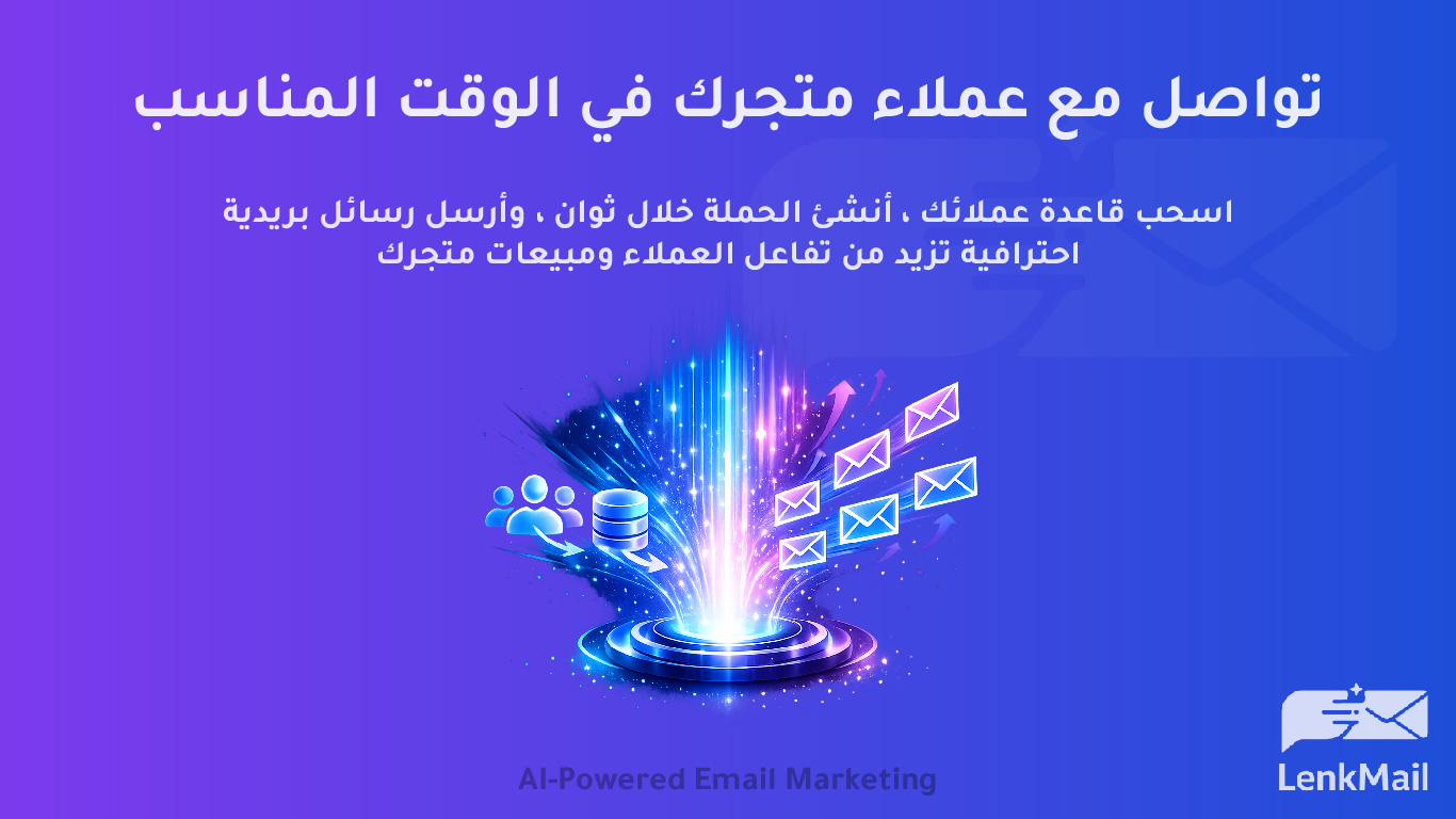 لينك ميل هي منصة ذكية لأتمتة التسويق عبر البريد الإلكتروني، مصممة خصيصًا لمتاجر التجارة الإلكترونية لتمكين التجار من إنشاء وإرسال حملات بريدية احترافية بسهولة وسرعة باستخدام الذكاء الاصطناعي.