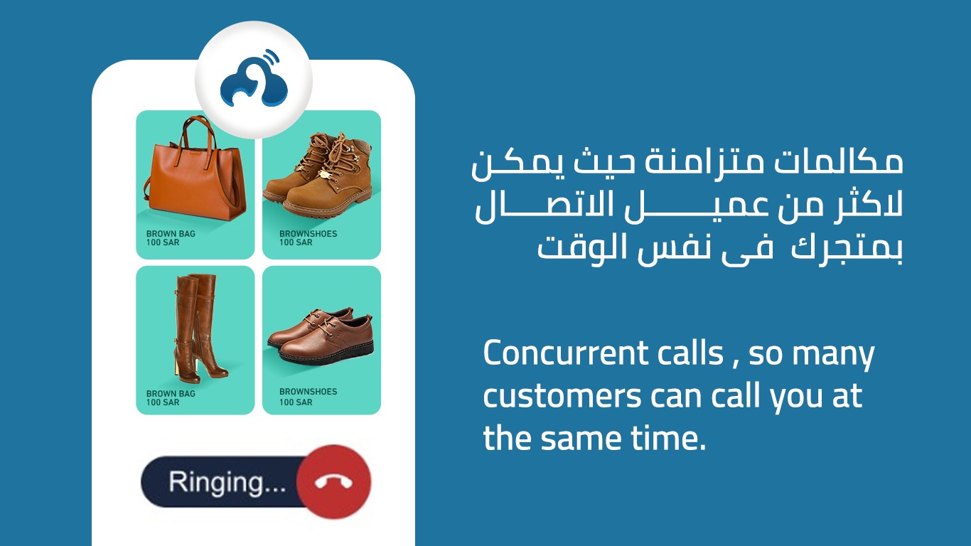 تمكن عميلك من التواصل معك فقط باستخدام أيقونة الاتصال المثبتة في متجرك، دون الحاجة إلى تثبيت أي تطبيقات