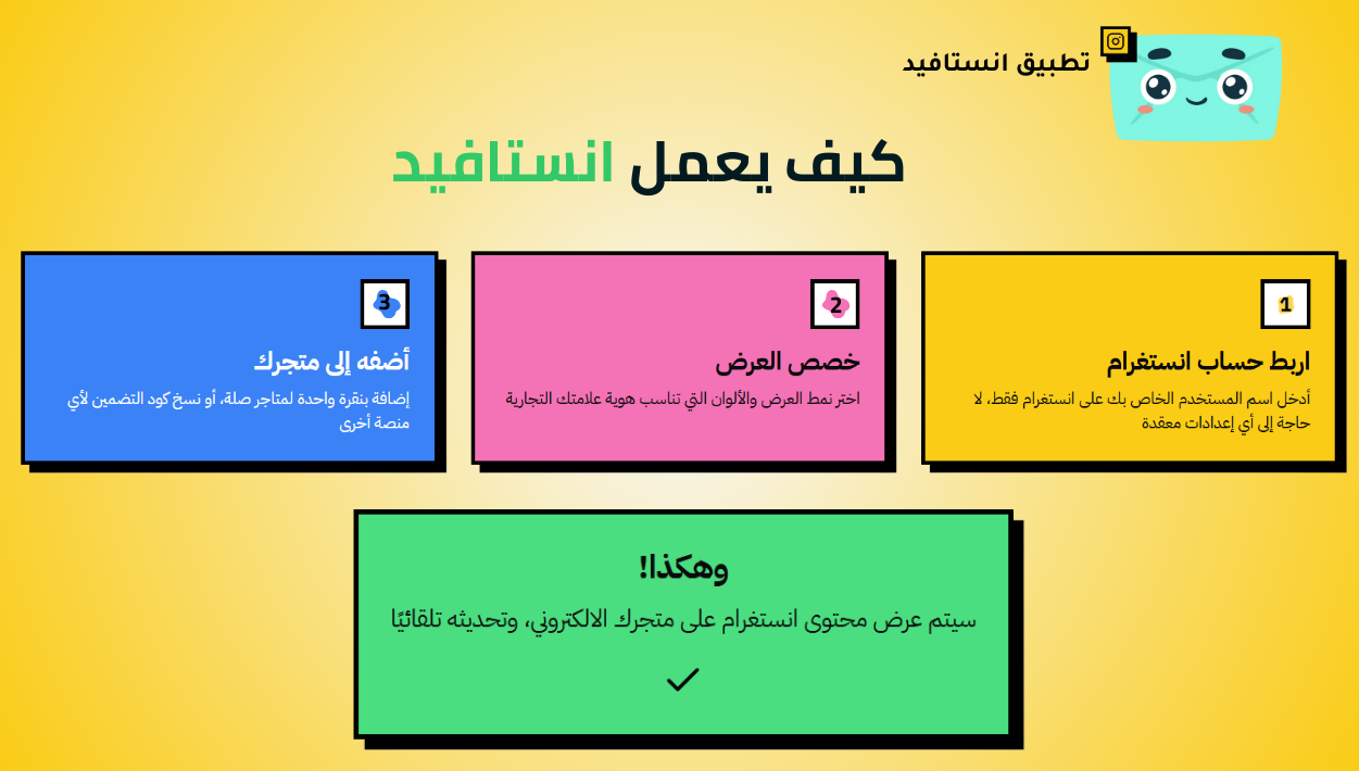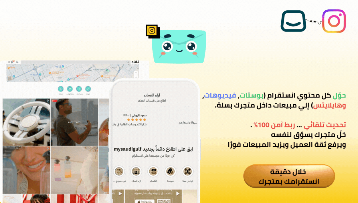 اعرض محتوى انستقرام (البوستات + الهايلايتس + الفيديوهات) تلقائياً في متجرك لزيادة الثقة والمبيعات | أول تطبيق يعرض الهايلايتس | ربط آمن بدون كلمة مرور | تحديث تلقائي فوري | خصم 50% بكود: instafeed50