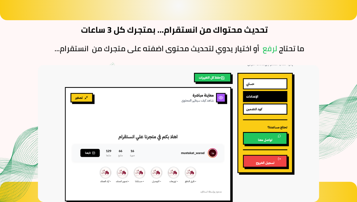 متطورين بشكل مستمر ورائعين التطبيق ذكي جدا في ظهور منشورات انستقرام بالمتجر اول باول وطلبت منهم تخصيص وماقصروا الشباب