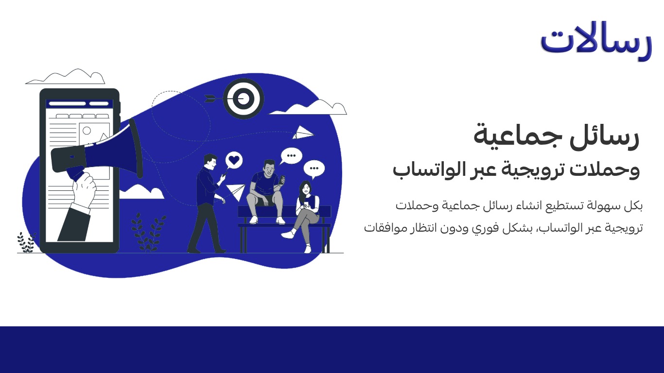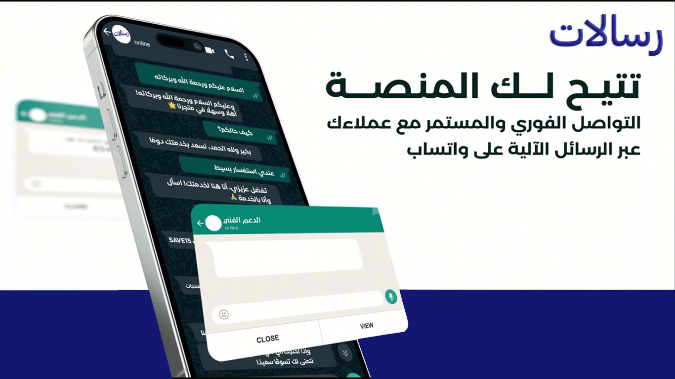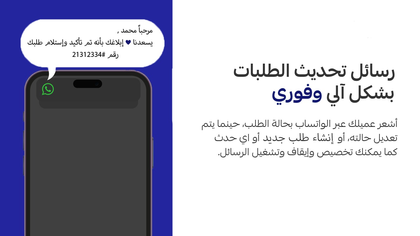أرسل لعملائك عبر الواتساب تحديثات حالة الطلبات وتسليم المنتجات الرقمية بشكل آلي، بالإضافة إلى حملات ترويجية وأكثر باستخدام الواتساب.
