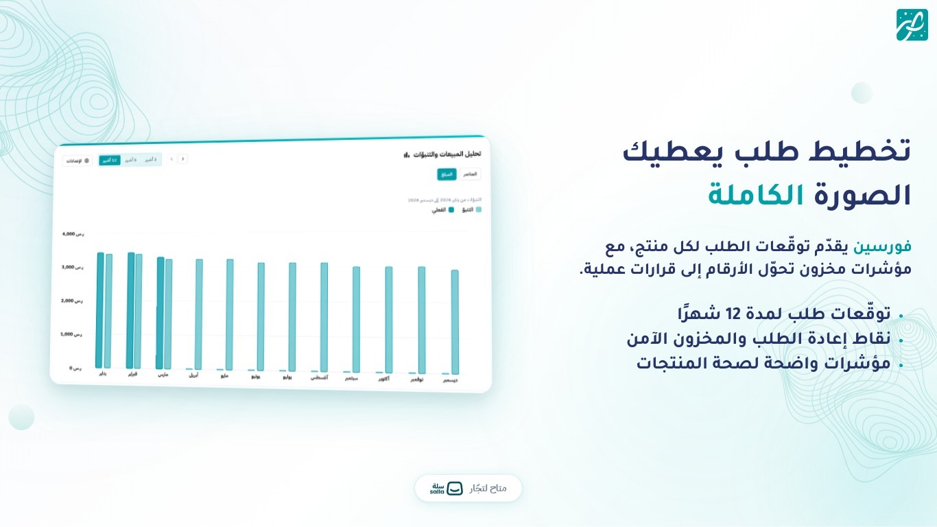 خطّط اليوم، وكن جاهزًا لما هو قادم. توقعات دقيقة للطلب لمدة 12 شهر تساعدك على معرفة توجهات المنتجات وكيفية ادائها — بدون تخمين.