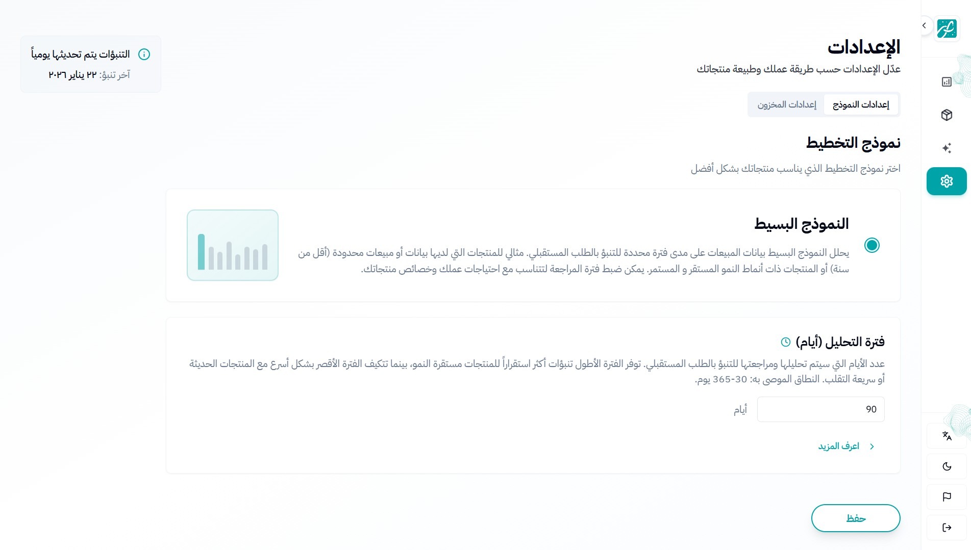 لوحة تحكم واضحة وتحديث يومي للتنبؤات