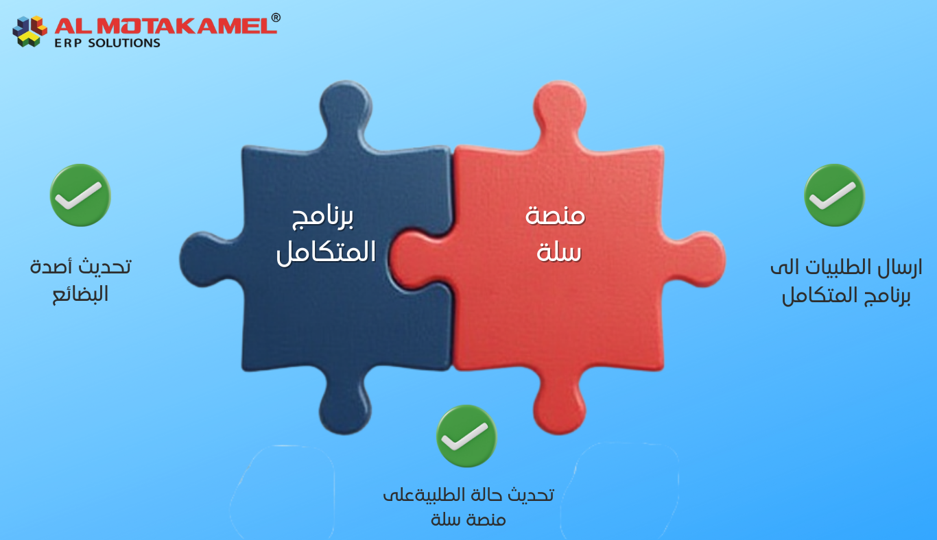 يحقق التطبيق لعملاء نظام المتكامل ERP تبادل المعلومات مع منصه سلة