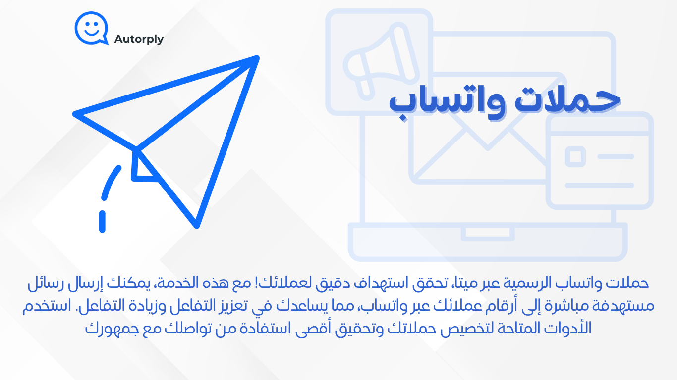 أوتوربلاي هو الحل الأمثل للتواصل مع عملائك عبر واتساب بطريقة احترافية وأتمتة رسائل المتجر بسهولة ومرونة. صُمّم التطبيق ليجعل تجربتك في إدارة العملاء سلسة، مع مجموعة من المميزات التي تدعم نمو مبيعاتك وتحسين علاقتك مع عملائك.