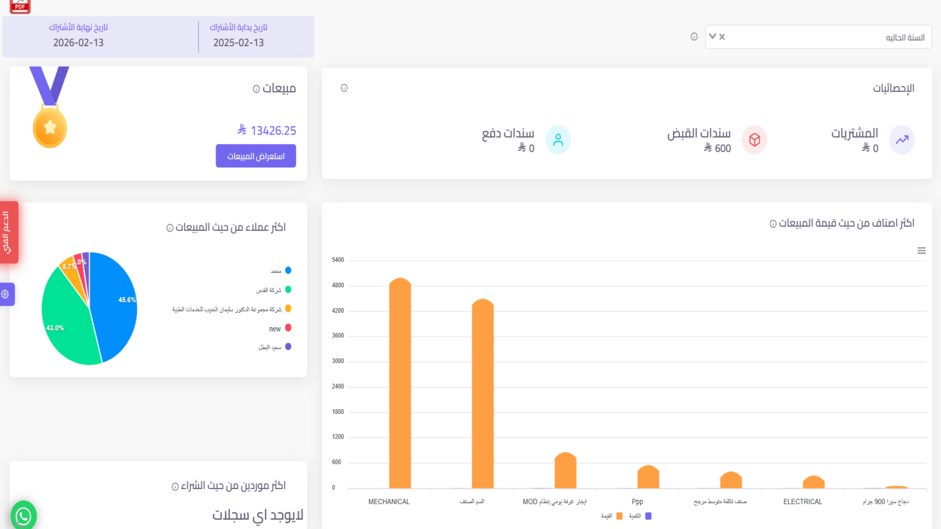 مصمم خصيصًا للمشاريع الصغيرة والمتوسطة في السوق السعودي، ويدعم الفوترة الإلكترونية والتكامل مع المتاجر الإلكترونية مثل سلة.
