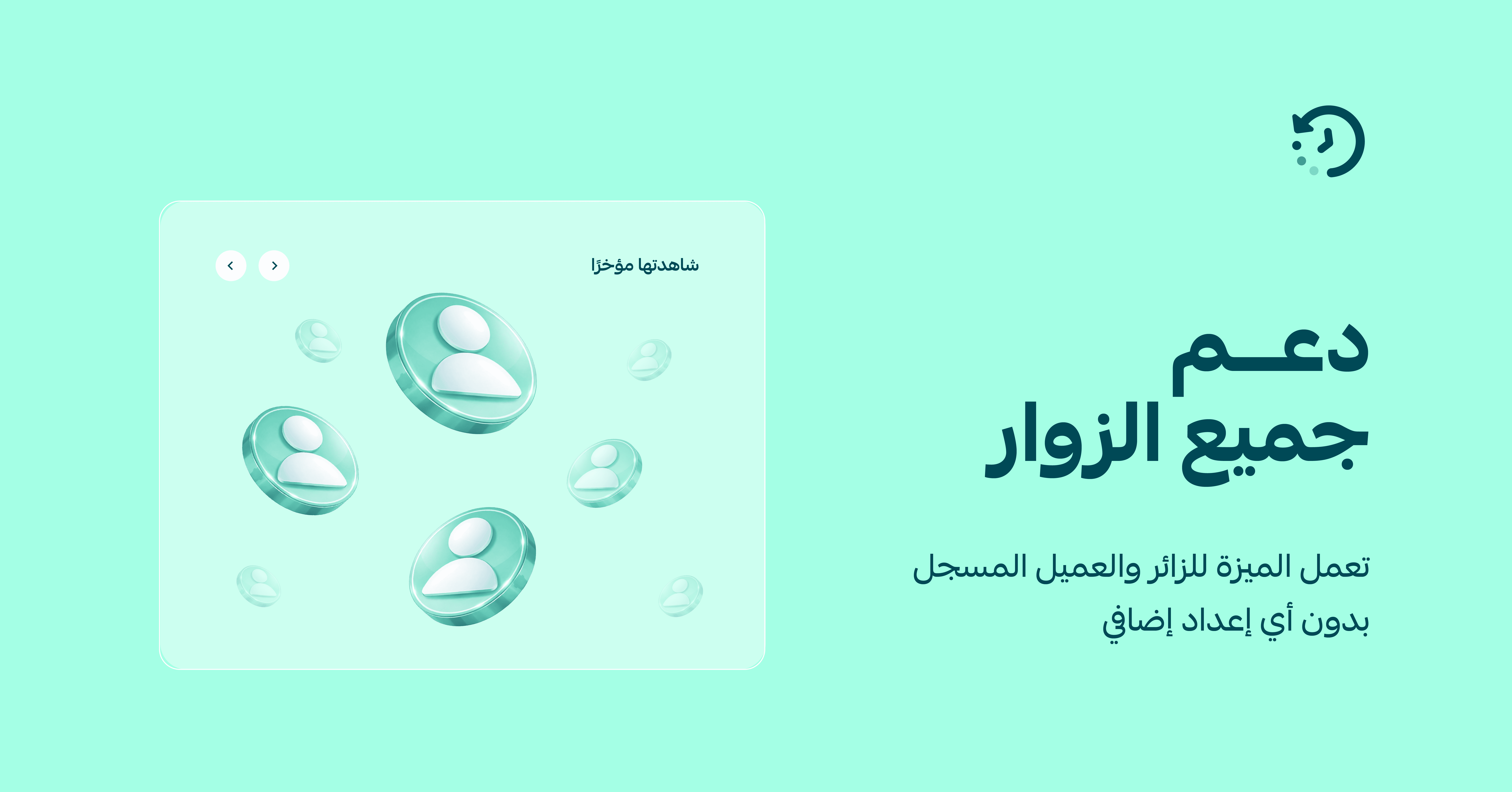 يقوم التطبيق بتسجيل سلوك التصفح وعرض المنتجات التي شاهدها سابقًا بشكل تلقائي داخل خانة معينة في متجرك، مما يسهّل عليه الرجوع لها واتخاذ قرار الشراء. يعمل بسلاسة أثناء التصفح، سواء للزوار أو العملاء المسجّلين، ليقدّم تجربة تحاكي اهتمام العميل.