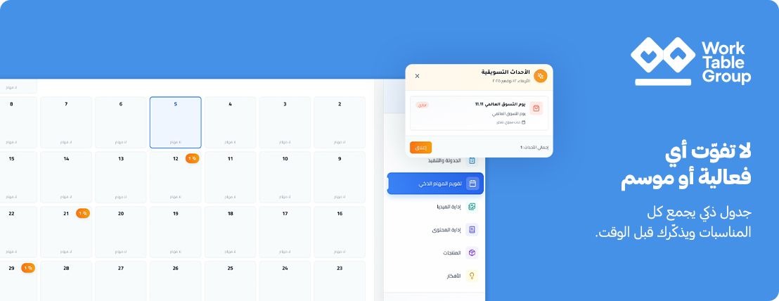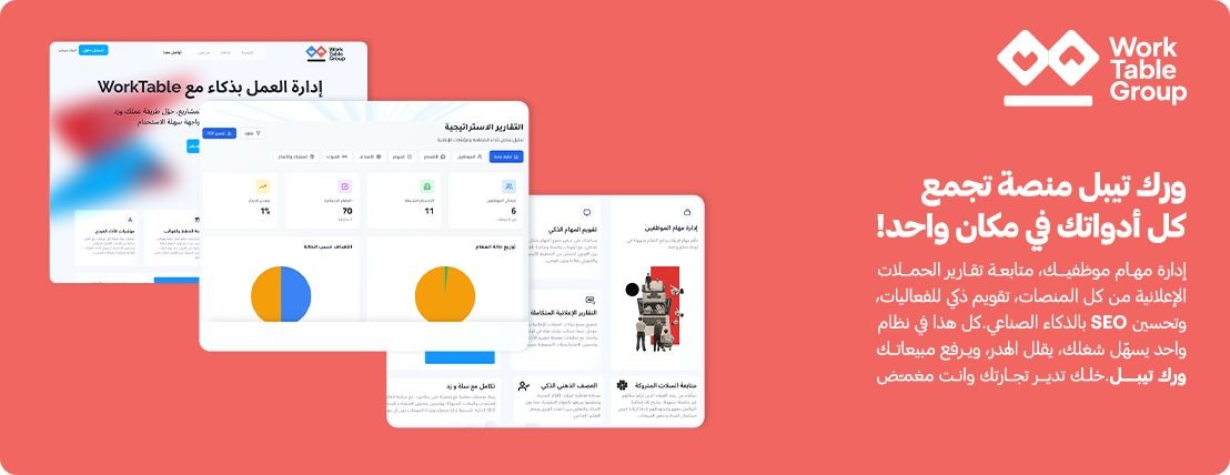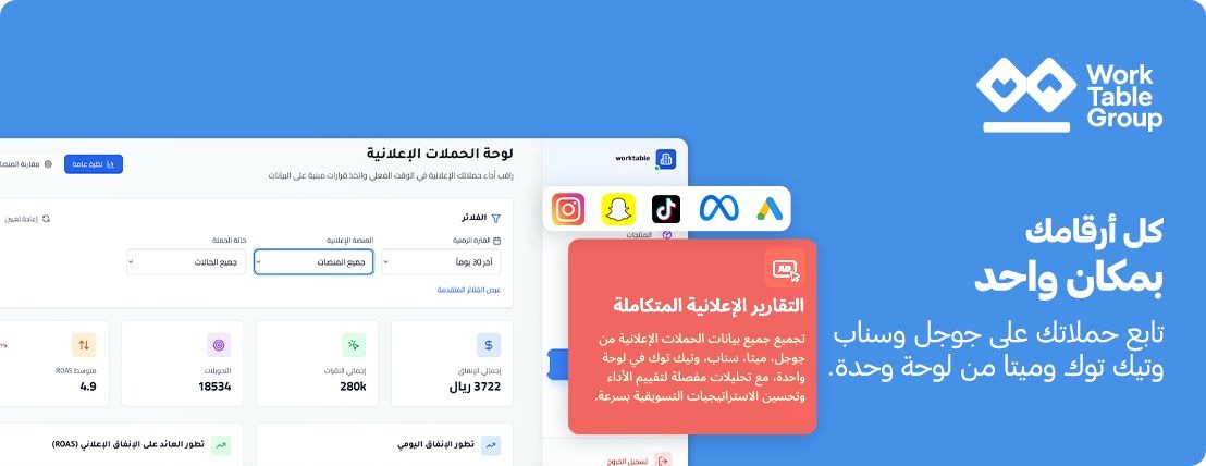 من خلال ورك تيبل، تقدر تتابع مهام فريقك، تنظّم مشاريعك، وتراقب أداء حملاتك الإعلانية على مختلف المنصّات مثل Google، Meta، Snapchat، وTikTok — وكل ...