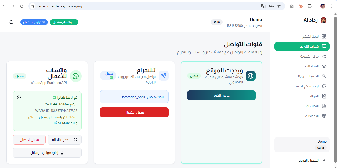 واتساب · تليجرام · دردشة الموقع · الكل في واحد
