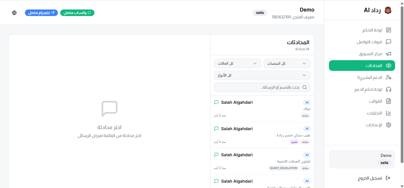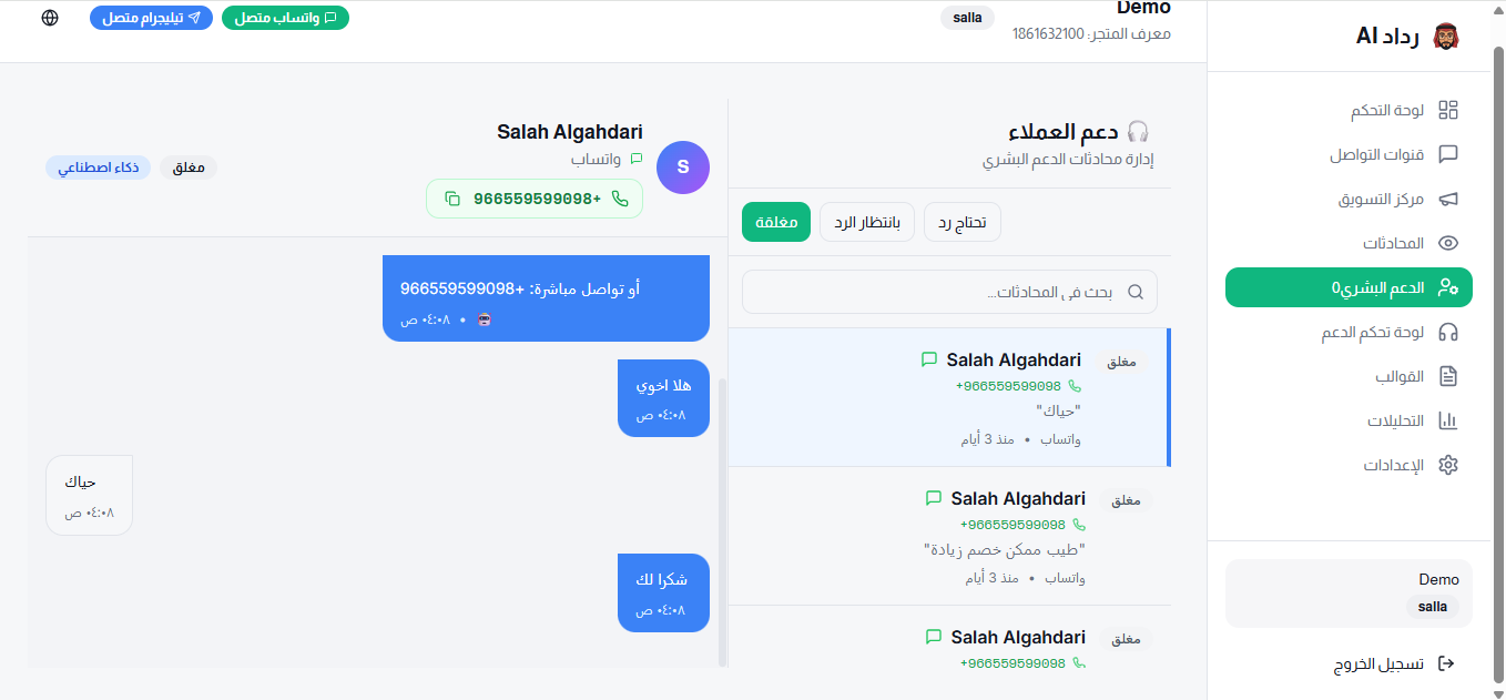 🤖 رداد — وكيل خدمة العملاء بالذكاء الاصطناعي