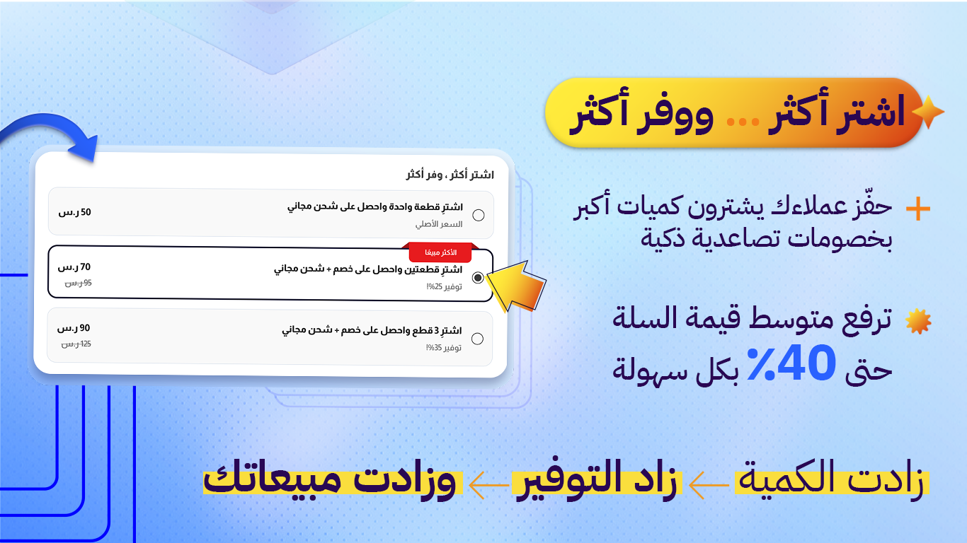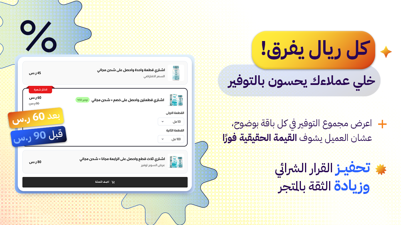 واحد من أفضل التطبيقات في سلة فعليا ساعدنا في رفع المبيعات وزيادة متوسط قيمة الطلب بشكل واضح. أنصح فيه وبقوة