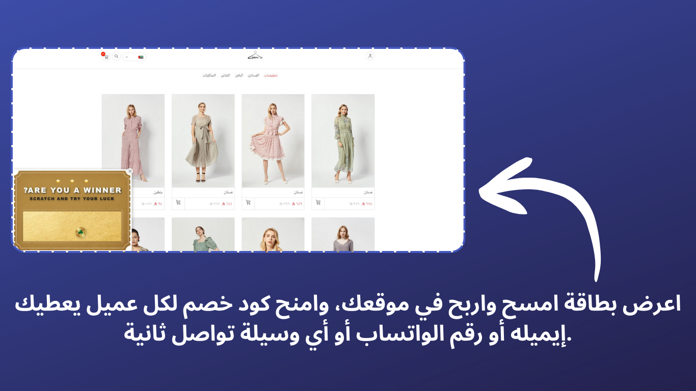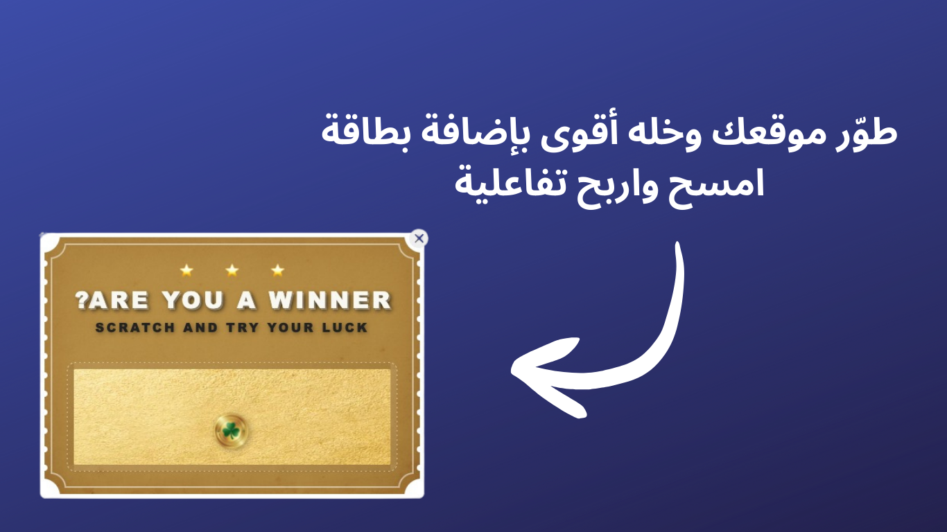 جمّل موقعك وحوّله إلى تجربة ممتعة تخلي الزوار يتحولون لعملاء محتملين مع لعبة “امسح واربح”. امسح واربح يطلع لك بوب-أب تفاعلي يخلي العميل يخدش بطاقة افتراضية ويشوف جوائز مثل خصومات، شحن مجاني، أو عروض خاصة. هالطريقة المشوّقة ترفع نسبة تعبئة ا...