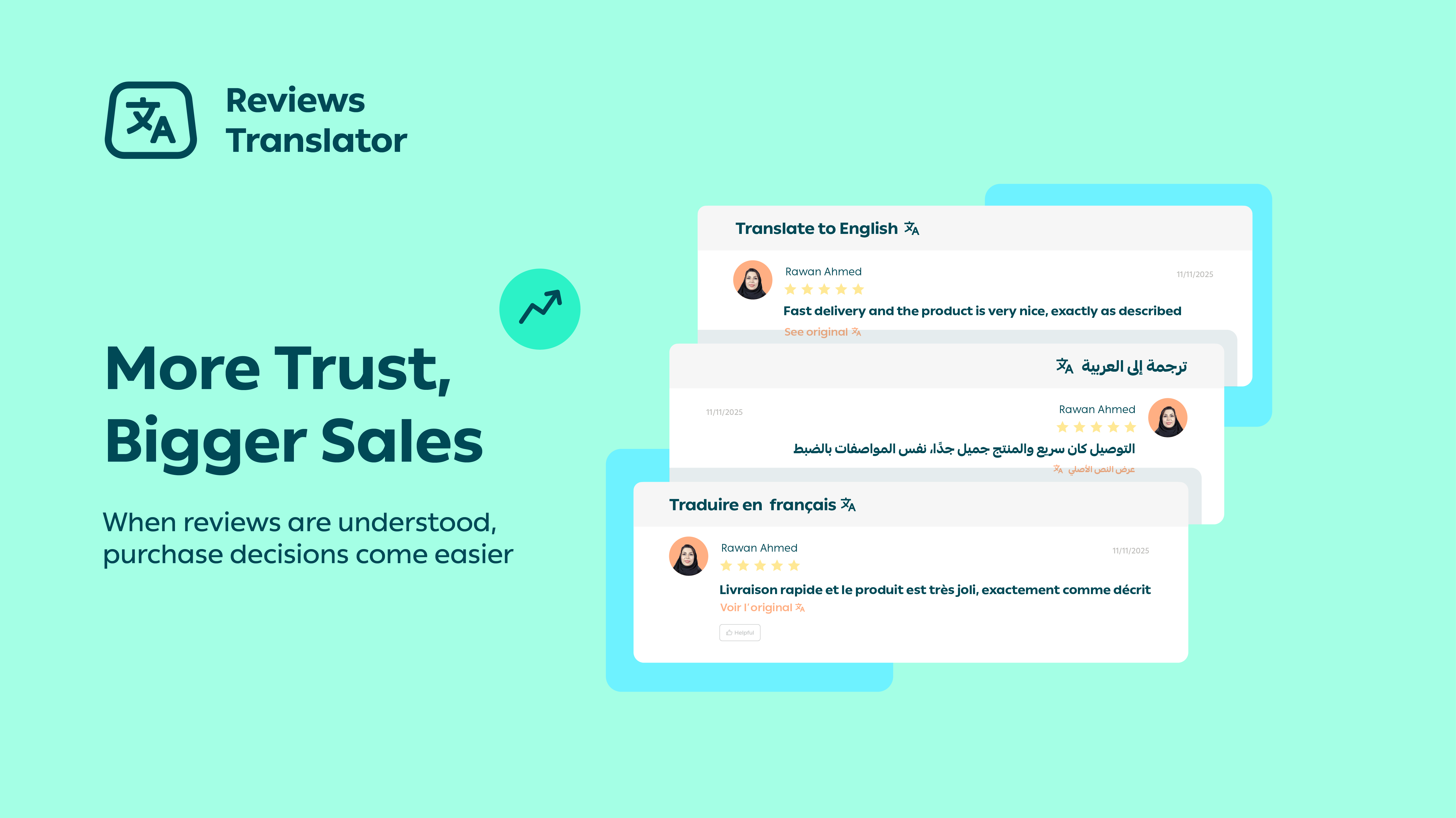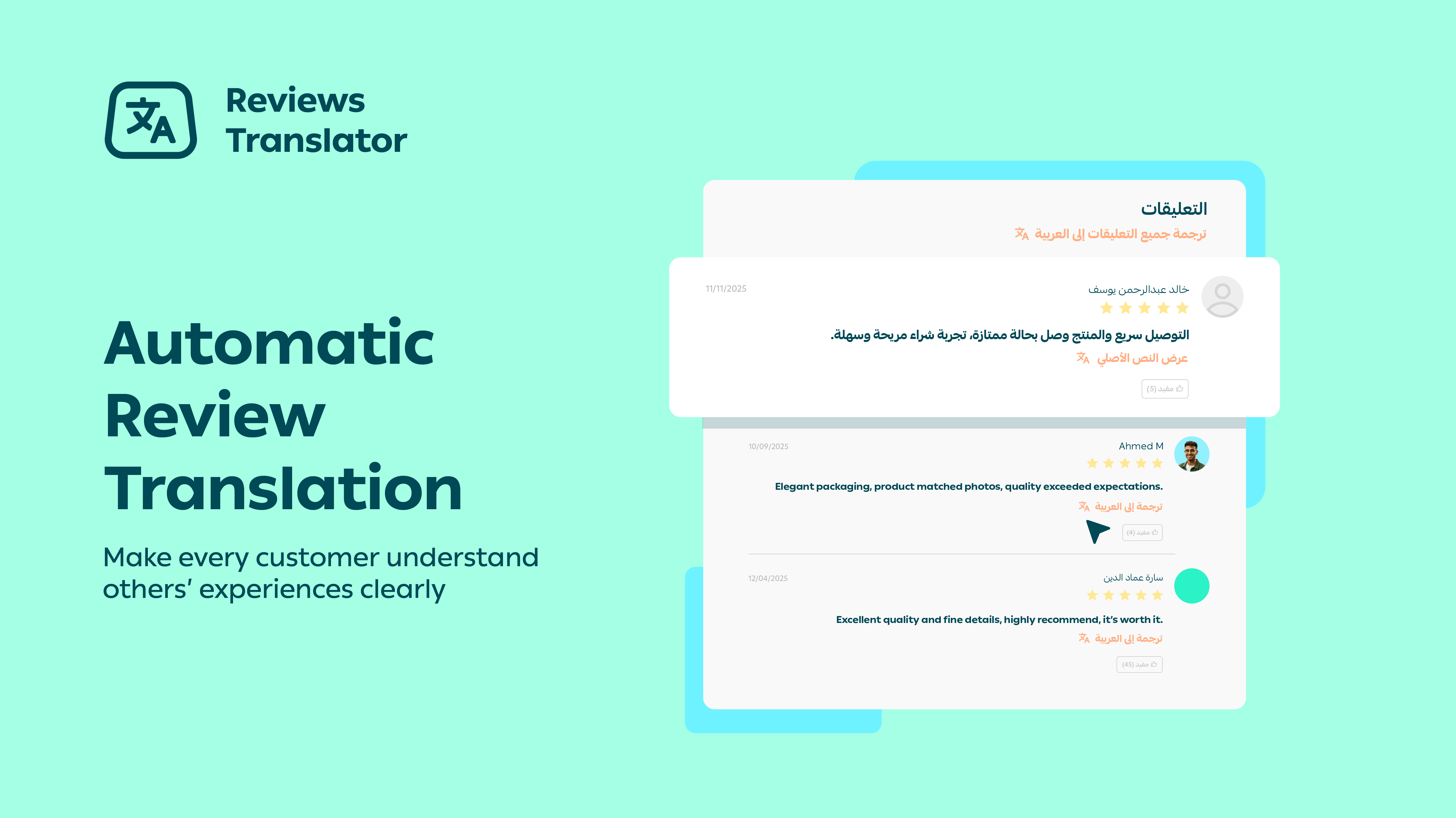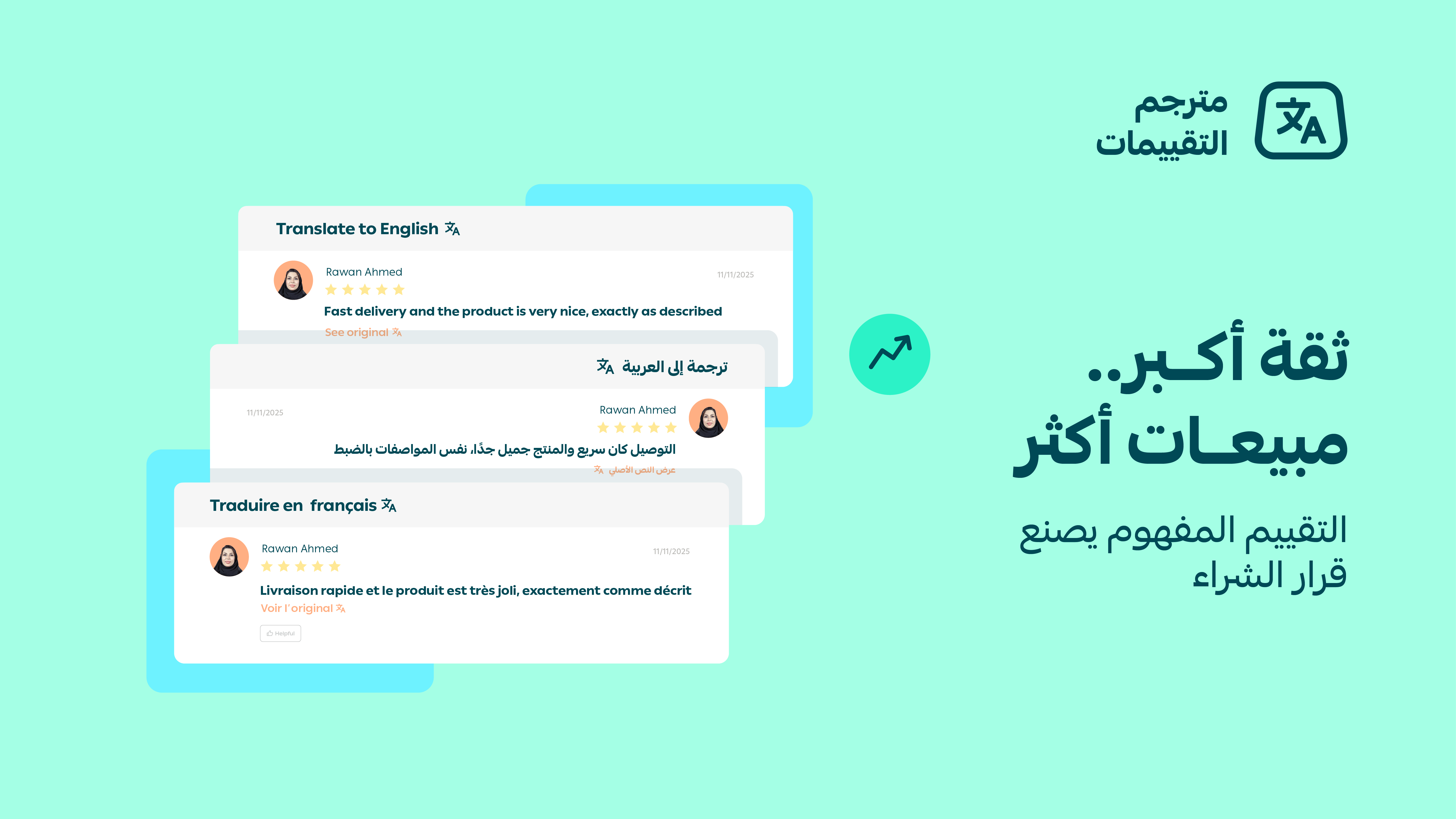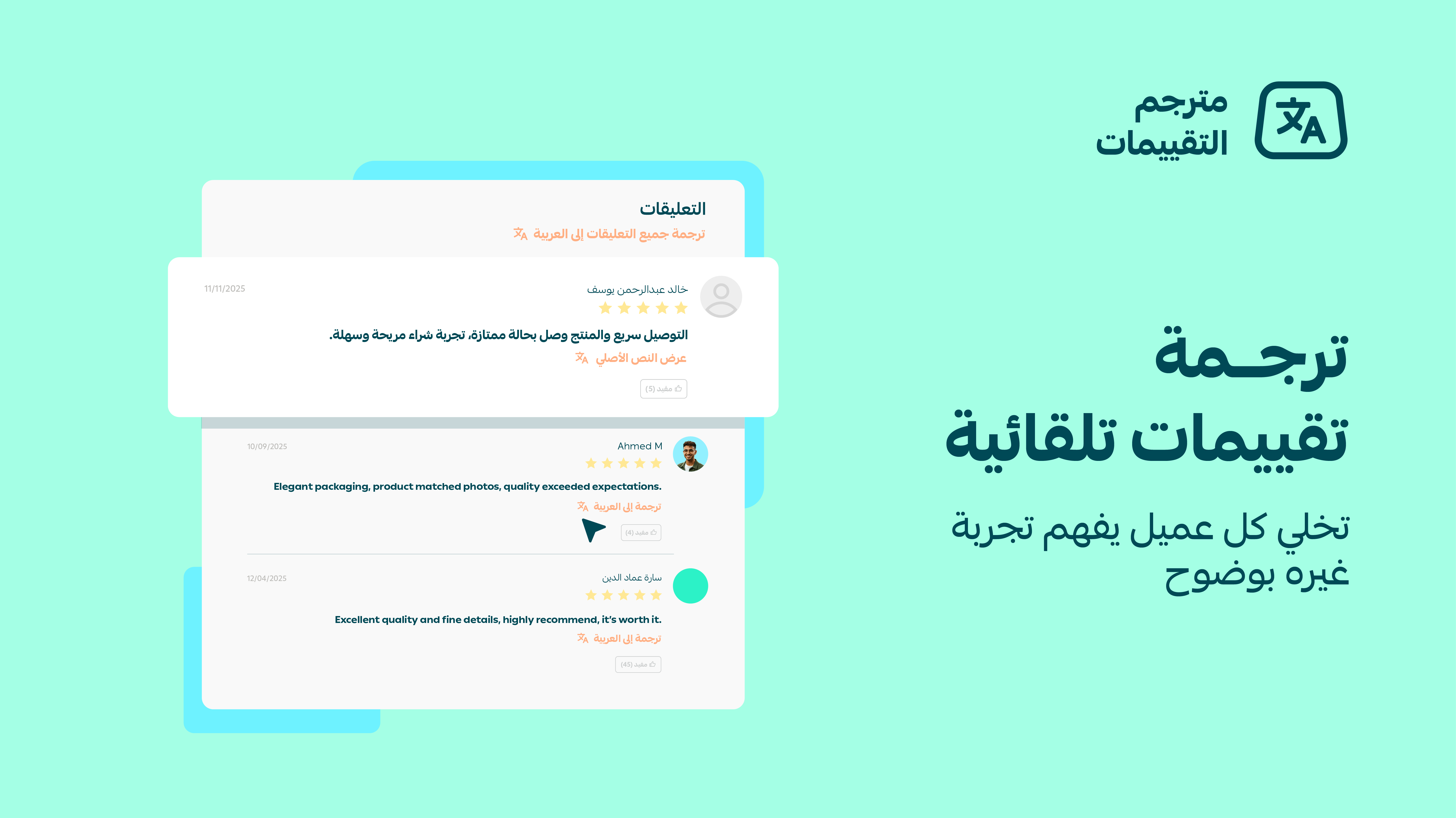 بمجرد تثبيتك للتطبيق، سيظهر لعملائك خيار "ترجمة كل التقييمات" في صفحات المنتجات.