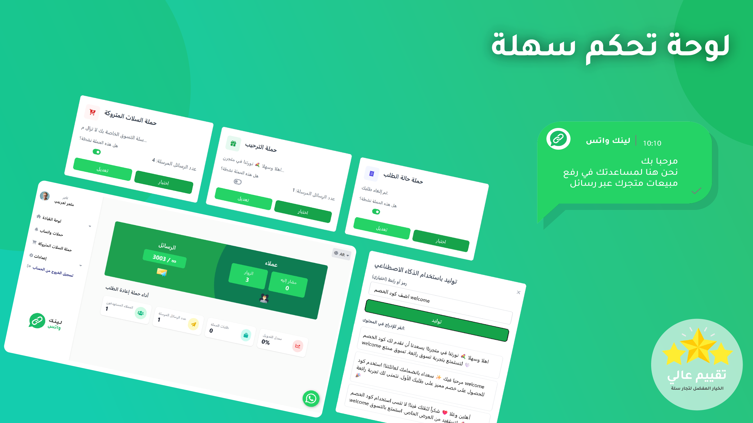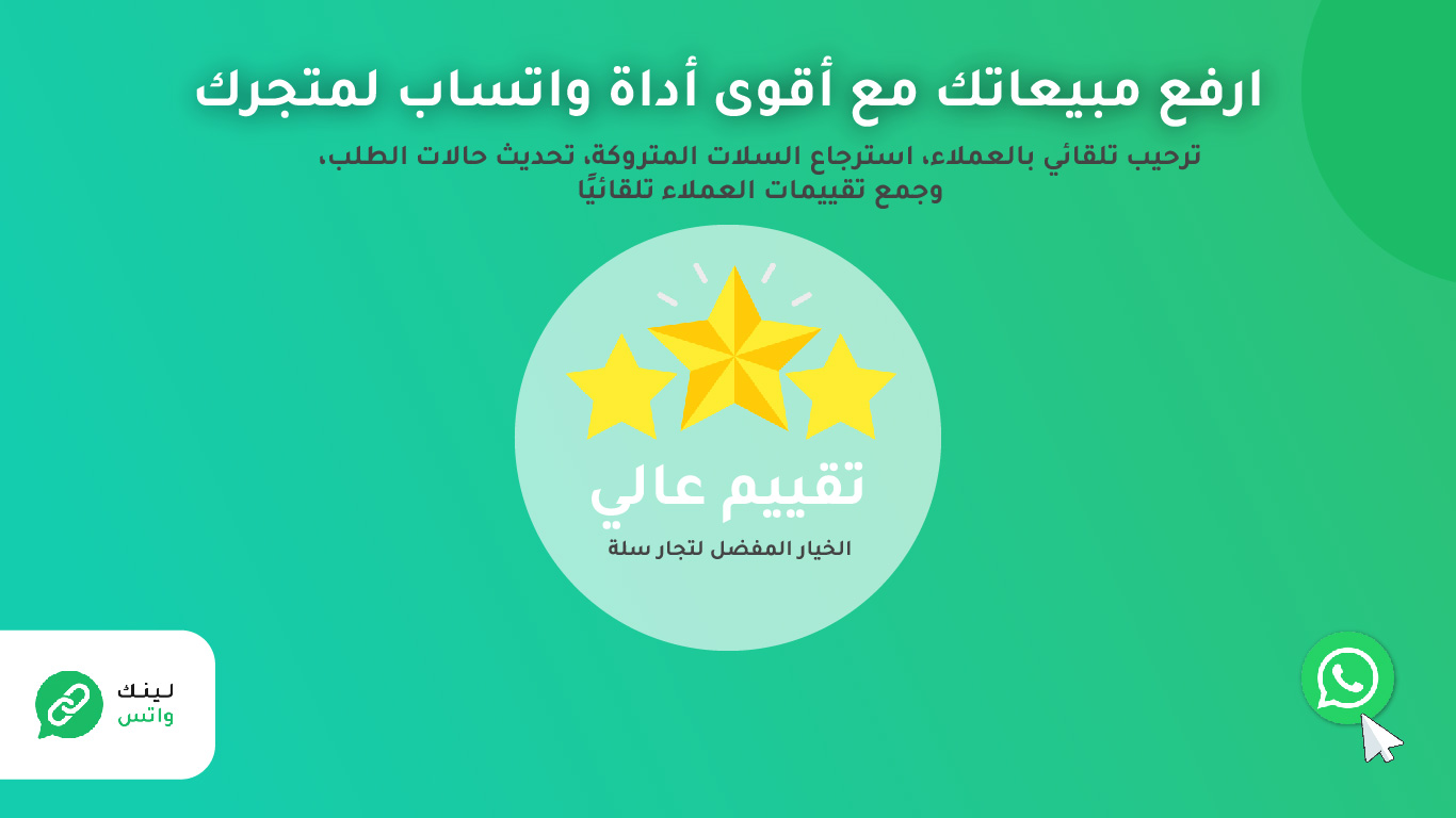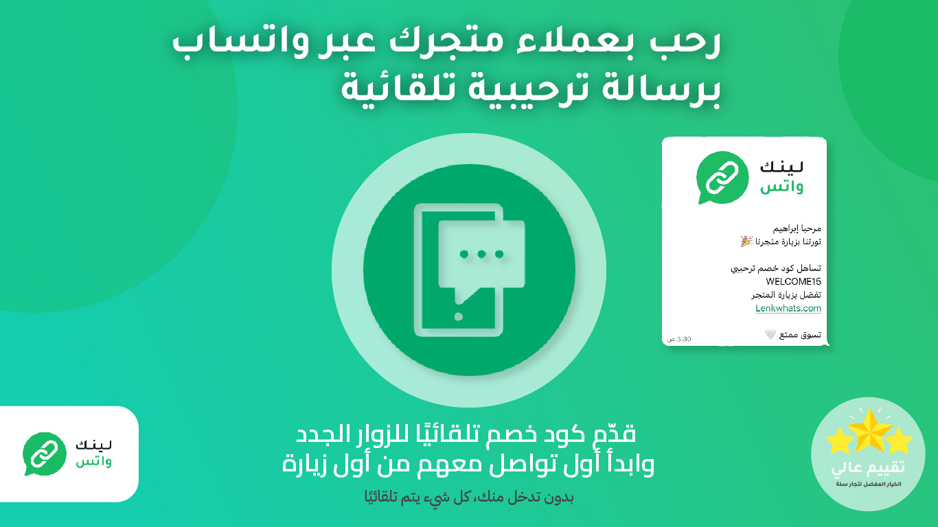 لينك واتس يستقبل عملاءك برسائل واتساب ذكية تحفّزهم على الشراء من أول زيارة.