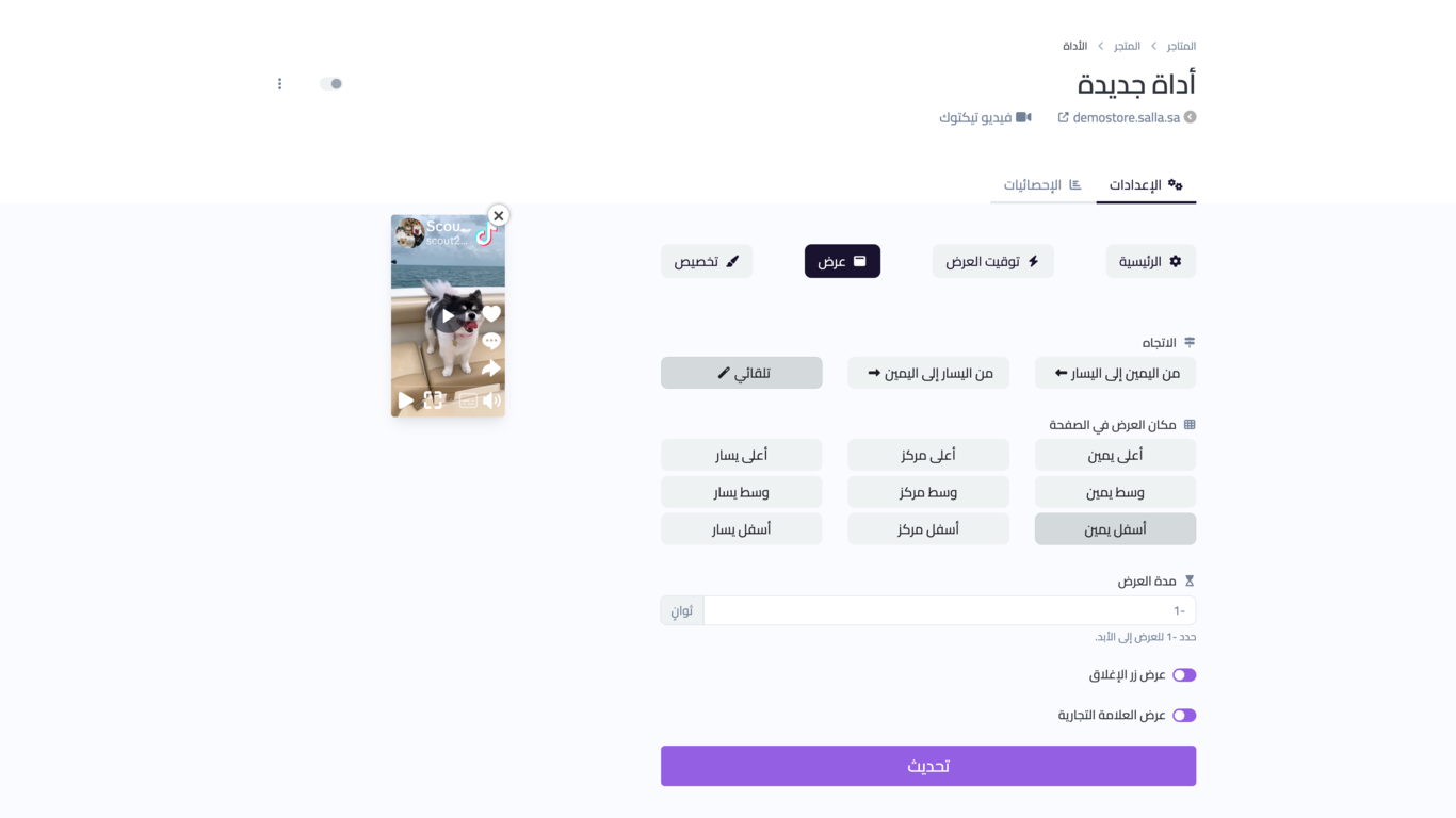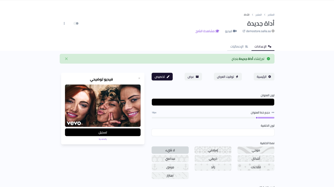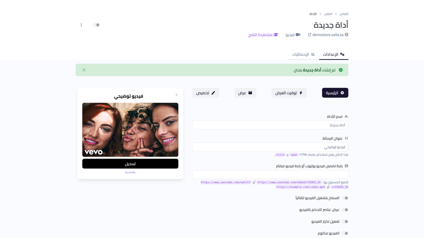 تطبيق نوافذ الفيديو هو أداة قوية لعرض مقاطع فيديو جذابة كنافذة منبثقة مباشرة في صفحات محددة من متجرك، لجذب انتباه الزوار وزيادة المبيعات.