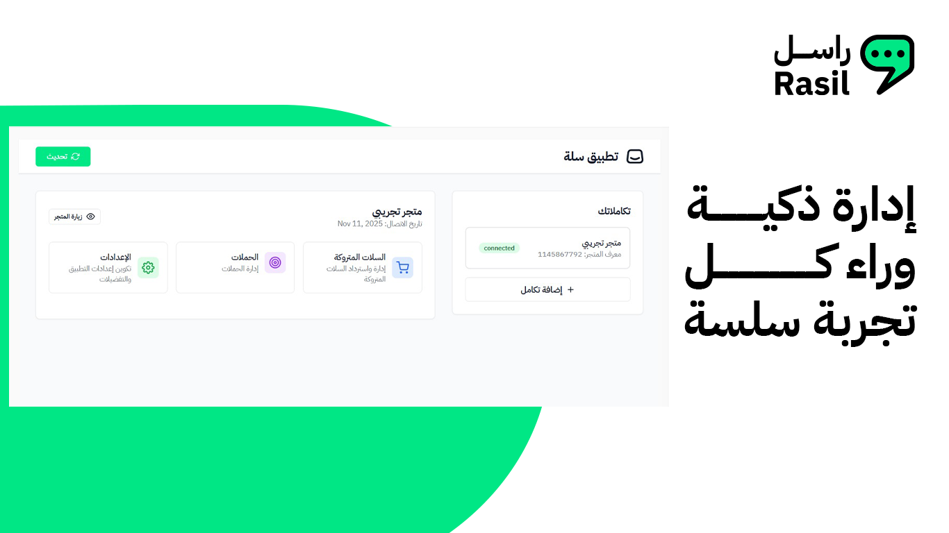 الحل الذكي والأكثر موثوقية للتجار على سلة لإرسال الإشعارات الفورية، تذكير السلات المتروكة، الحملات الترويجية، وبناء ردود آلية على الواتساب — كل ذلك بشكل أوتوماتيكي وببضع نقرات فقط.