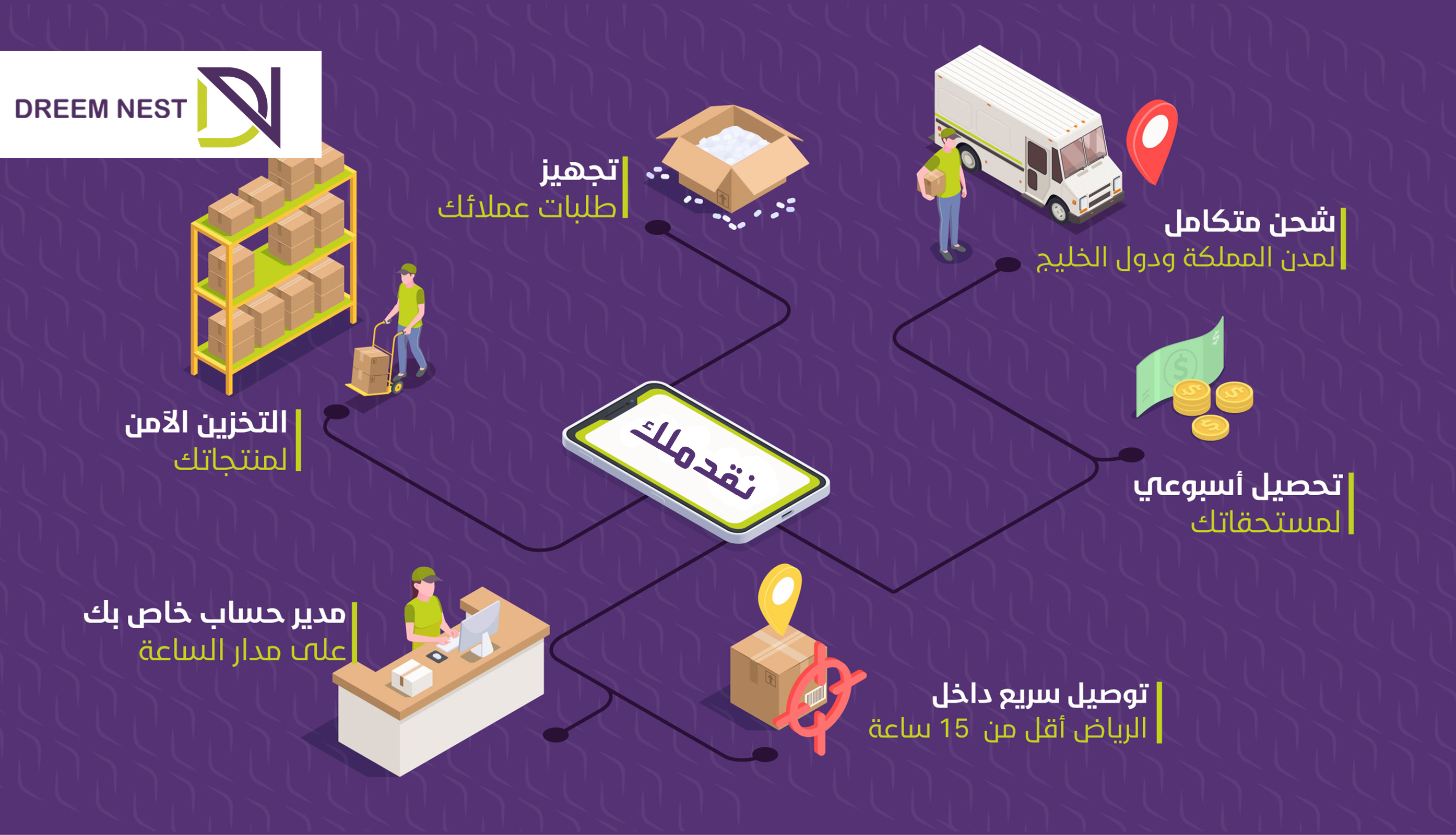 تقوم دريم نست بتوصيل الشحنات الجاهزة داخل الرياض من خلال فريقها في أقل من 24 ساعة من تجهيز الطلب، ويتم توصيل باقي مدن المملكة من ...