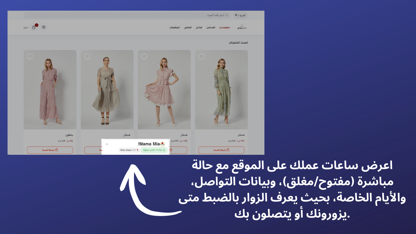 تطبيق ساعات عمل المتجر يخلي تواجدك واضح من أول لحظة يدخل فيها الزائر لموقعك.