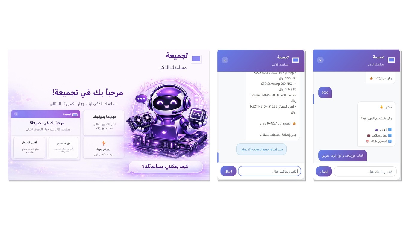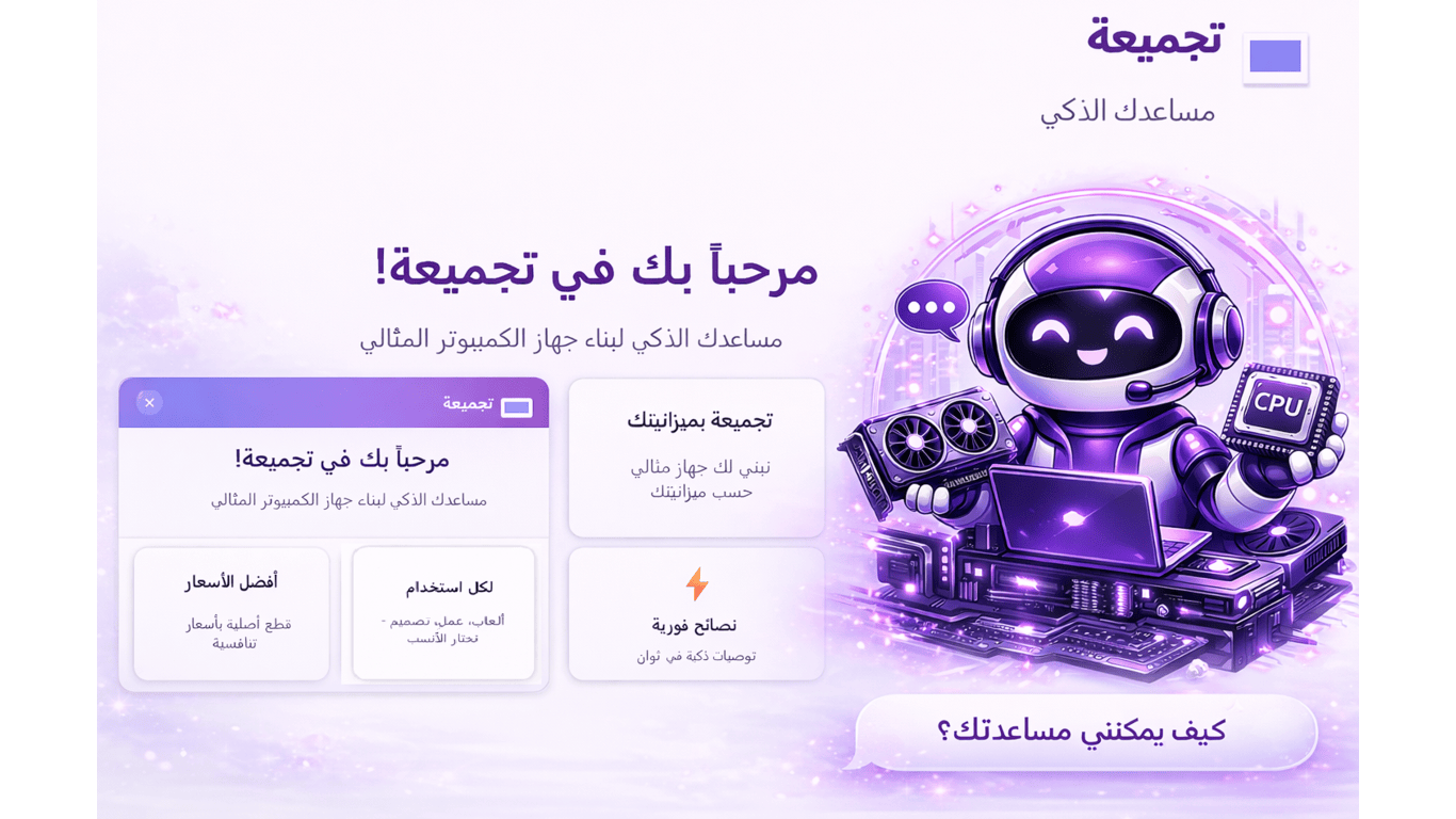 Tajmi3a is Saudi Arabia's first intelligent assistant that helps you choose the best PC components based on your budget and needs. Whether you want a gaming ri...